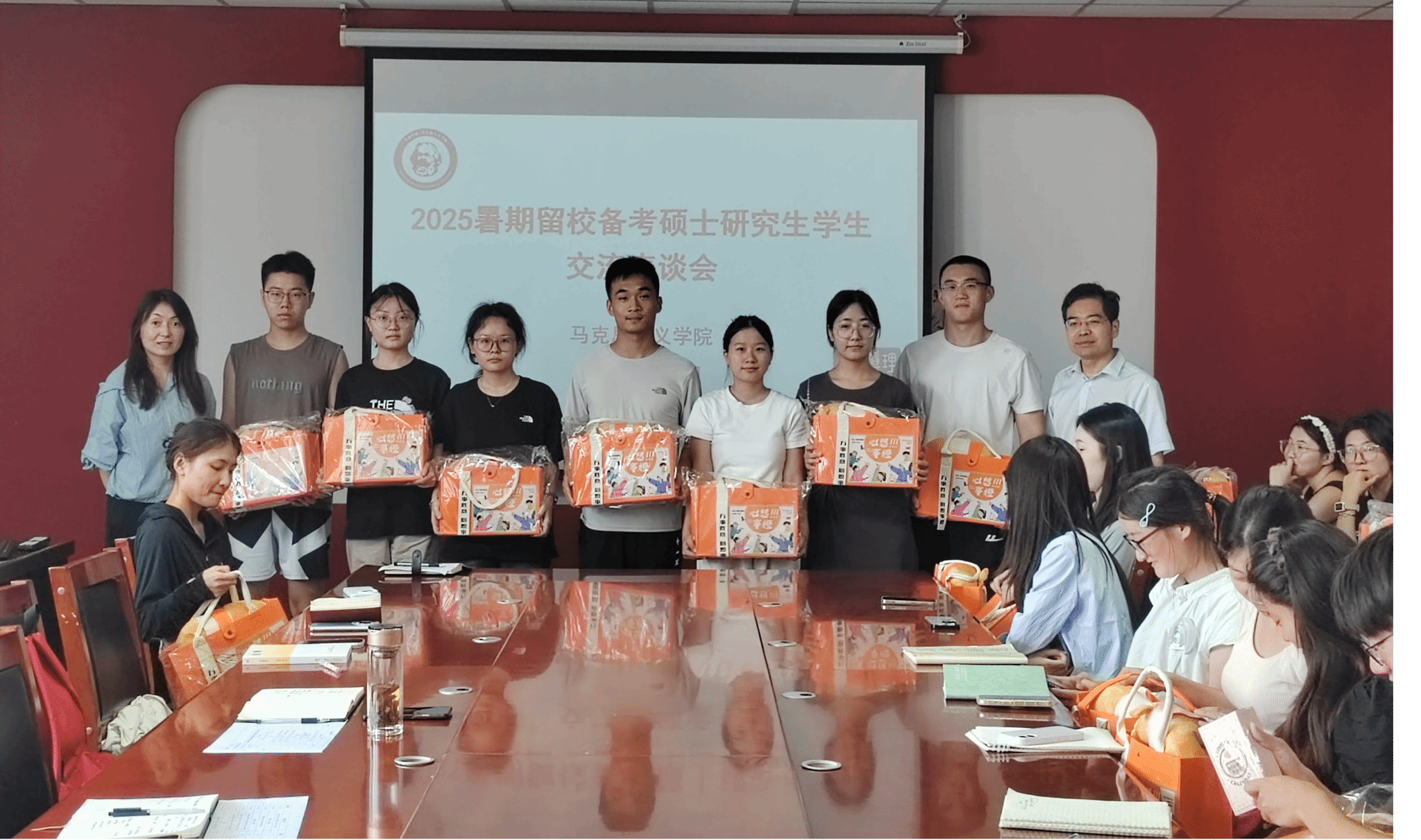 随后,学院领导为在场的考研学子发放了精心准备的“备考加油包”。小小的礼包,承载着学院对同学们的牵挂与期许,传递着“研”途相伴的温暖,也为这场交流座谈奠定了关怀满满的基调,接过礼品的同学们脸上洋溢着灿烂的笑容。