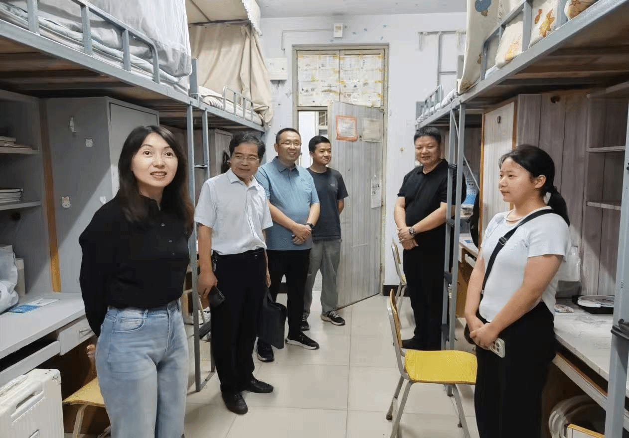 傍晚,我院党委书记谢依楠、院长周耀宏带领学院领导班子成员、学院团委和学工办负责人、新生辅导员到静庐学生公寓看望2025级新生,进行贴心交流,送上亲切问候与温暖祝福。