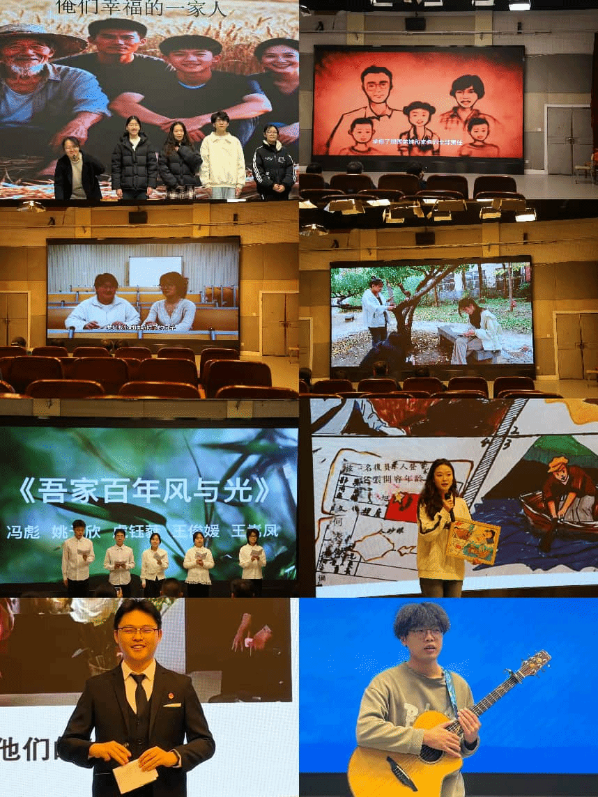 现场展示阶段,同学们用真诚的展示记录了一个个承载时代印记与情感温度的家庭故事。从“测绘罗盘的家族传承”到“红脉传家”的信仰接力,从“黄河之滨的绿色蜕变”到“一部家庭口述史,两纪家国同梯梦”的深情叙述,从“吾家百年风与光”到“草原上的法治足迹”的代际传承,同学们以原创散文诗、绘画、情景剧、沙画、吉他演奏等多种形式,生动记录了普通家庭在时代洪流中的坚守、奋斗与变迁。这些作品不仅承载着祖辈的记忆、父辈的足迹,更折射出法治进步、乡村振兴、文化传承等宏大主题在普通人生活中的真实回响。它们让我们看见,“人民”不是抽象的概念,而是每一个具体生命的鲜活历程,而“时代”正是由这样无数个家庭的微光共同照亮。