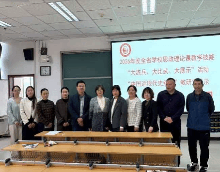 3月27日下午,马克思主义学院中国近现代史纲要教研室在文综楼504举行2026年度思想政治理论课“大练兵”活动。院长周耀宏、副院长林云飞莅临现场指导,课程组全体专兼职教师参与。