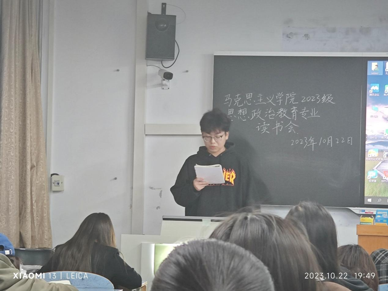 本场读书会各年级所选取的阅读书目分别为毛泽东《星星之火,可以燎原》、列宁《谈谈辩证法问题》和马克思、恩格斯《德意志意识形态》。读书会前,同学们自行阅读电子版文章并书写阅读感悟。在读书会上,同学们通过理论联系实际,结合自身的学习与生活分享出自己的感受以及阅读时思考到的问题。分享结束后,各年级辅导员对同学们的发言做了总结。