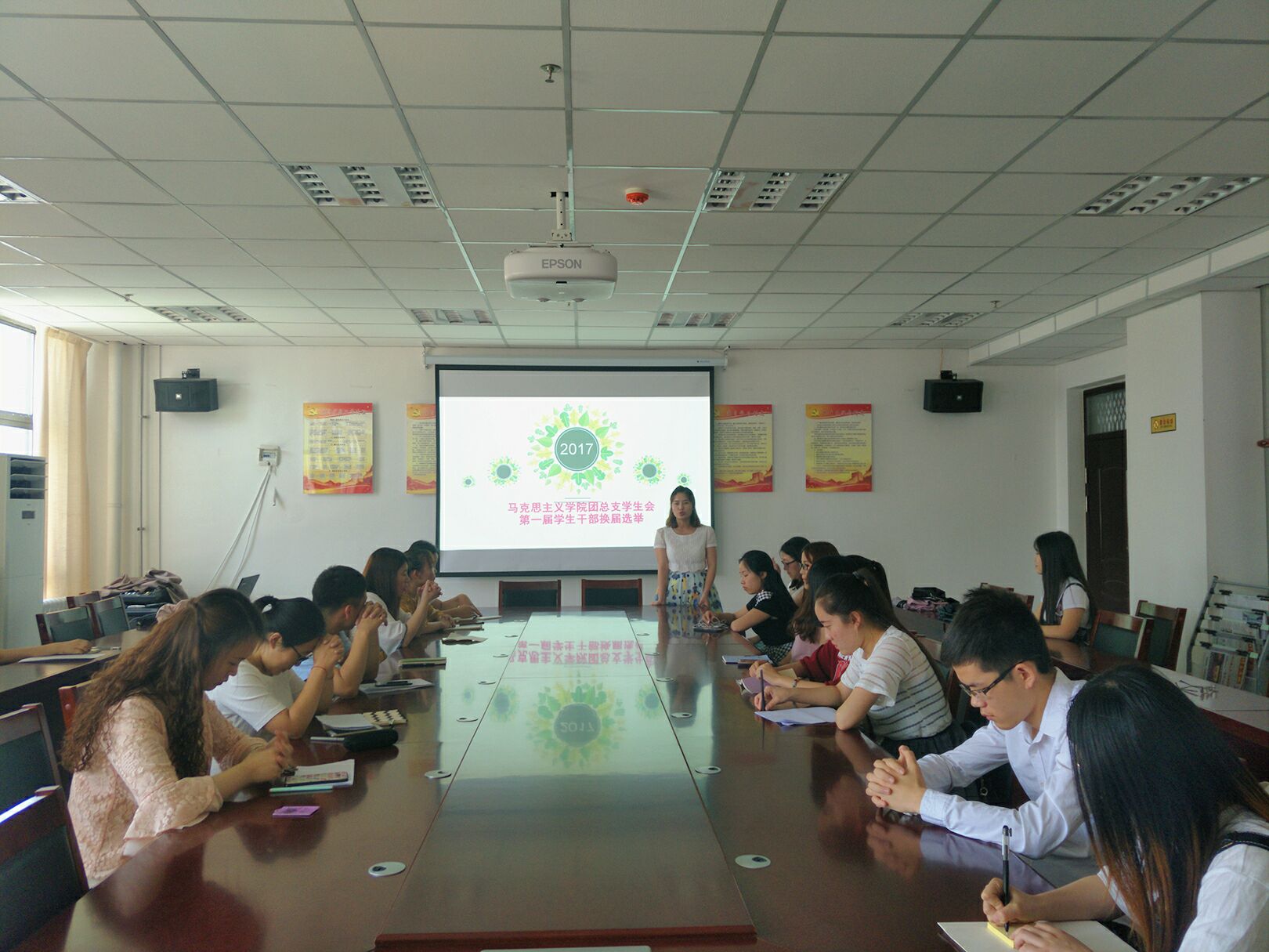 为通过公开竞聘方式换届优秀学生干部,在原有团总支学生会基础上,组建我院新一届团总支、学生会,并充分发挥其自我管理、自我教育、自我服务的职能。我院在5月27日12:30于文科综合楼1130会议室进行了马克思主义学院第一届团总支学生会学生干部换届竞选工作。我院党总支副书记周耀宏、团总支书记张静、辅导员王欣欣出席了本次会议,全体团总支学生会成员也进行了积极参与。会议由团总支副书记杨菲主持。