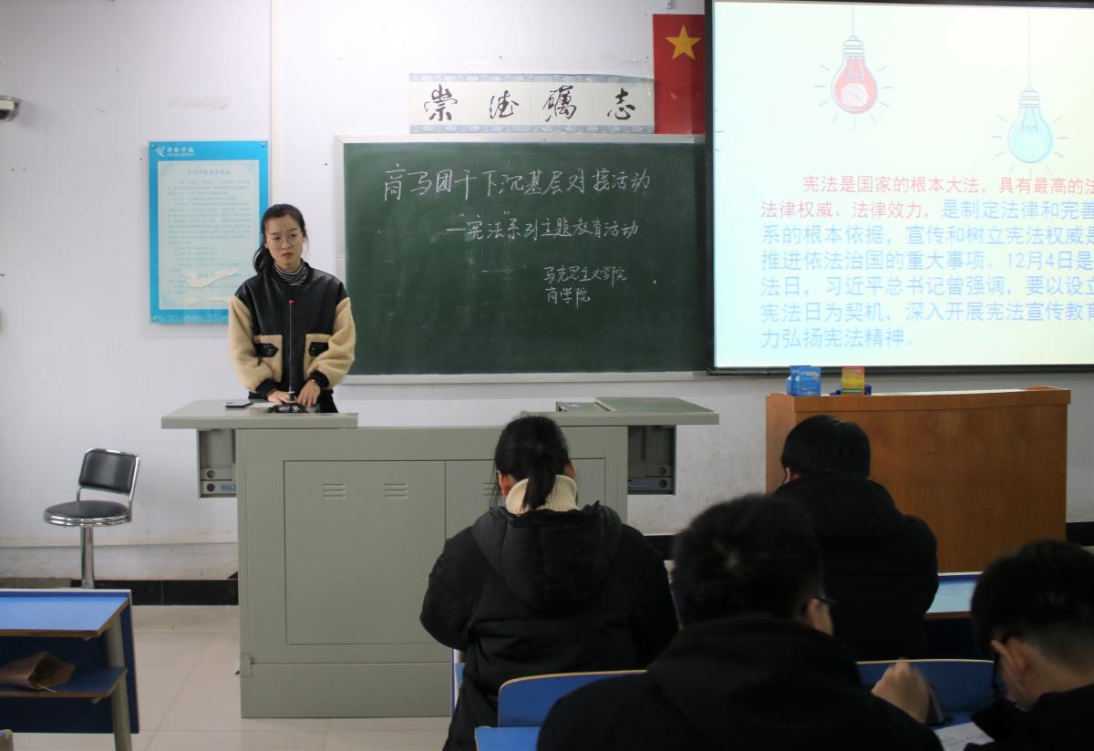 为弘扬宪法精神,提高学生的法律意识,加强学生的法制观念,2018年12月5日,商学院与马克思主义学院在启智楼305室联合举办了以“宪法教育”为主题的教育活动。马克思主义学院2017级、2018级思想政治教育1班全体同学以及商学院2018级人力资源管理1班、2班的全体同学参加了本次主题教育活动。