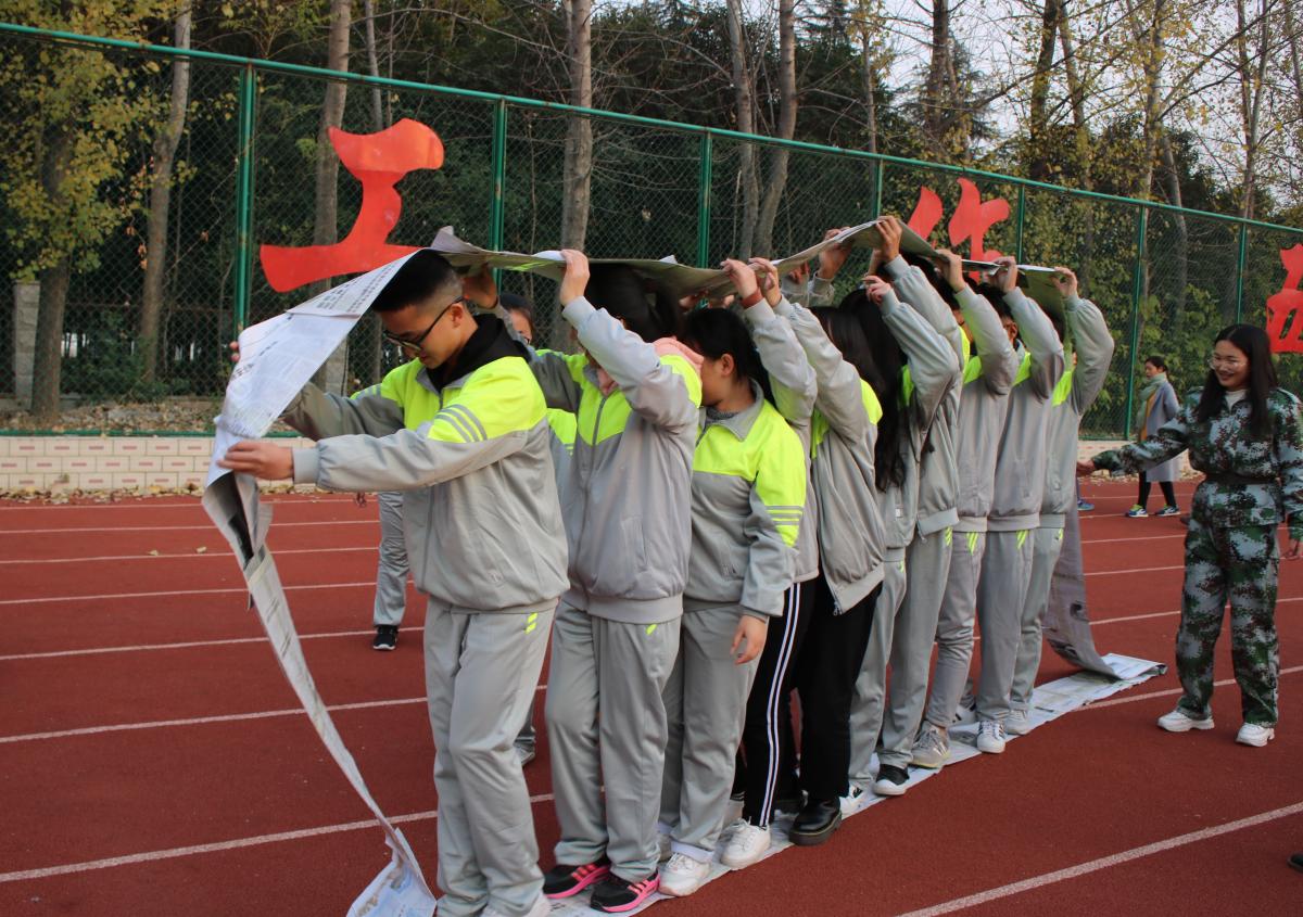 在活动开始之初,各队在教官和政委的带领下一起商讨了队名、队歌、口号、队形并进行了展示,每个队伍都有自己的特色,如“粉红娘娘”“好嗨哟”“魔法少女队”等队名展示了同学们的创新思维。在自由游戏时,各队更是展现出了团结协作的精神。同学们认真听着教官、政委的指挥,齐心协力完成了纸杯传递、无敌风火轮、纸巾跳大绳、水果蹲等一系列团体活动。在信任背摔环节,同学们勇敢地克服了心理上的恐惧,一个接一个地站上了高台,挑战了自己。最终每位同学都克服了艰难险阻,完成了任务。一整天的活动中,田径场上不仅有响亮的口号声,也有同学们的笑声笑语。历时一天,商马团干下基层之素质拓展活动圆满结束。