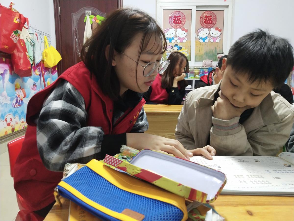 下午一点三十分,志愿者在校门口集合完毕后一同前往康复中心。在抵达之后,孩子们热情地和志愿者们打招呼,大家一起搬桌椅布置学习小园地。老师给孩子们布置了需要完成的作业,志愿者们手把手地教他们写汉字、做数学题,并教他们朗读课文,纠正他们的读音。虽然孩子们身体上存在着缺陷,吐字也不甚清晰,但他们的内心世界却丰富多彩,他们也同样地渴望学习知识。在志愿者的辅导下,孩子们很快就完成了老师布置的作业,他们一脸自豪地拿给老师检查,看着他们一脸雀跃的表情,志愿者也不由得给孩子们竖起了大拇指。接着,老师拿出积木和彩纸,志愿者和孩子们一起搭建积木,教孩子们折纸,孩子们跟着志愿者的步骤,低头认真折叠,小小的教室里欢声笑语不断。在这之后,志愿者们帮助基地的老师整理教室、打扫卫生,在一阵忙碌中结束了今天的活动。