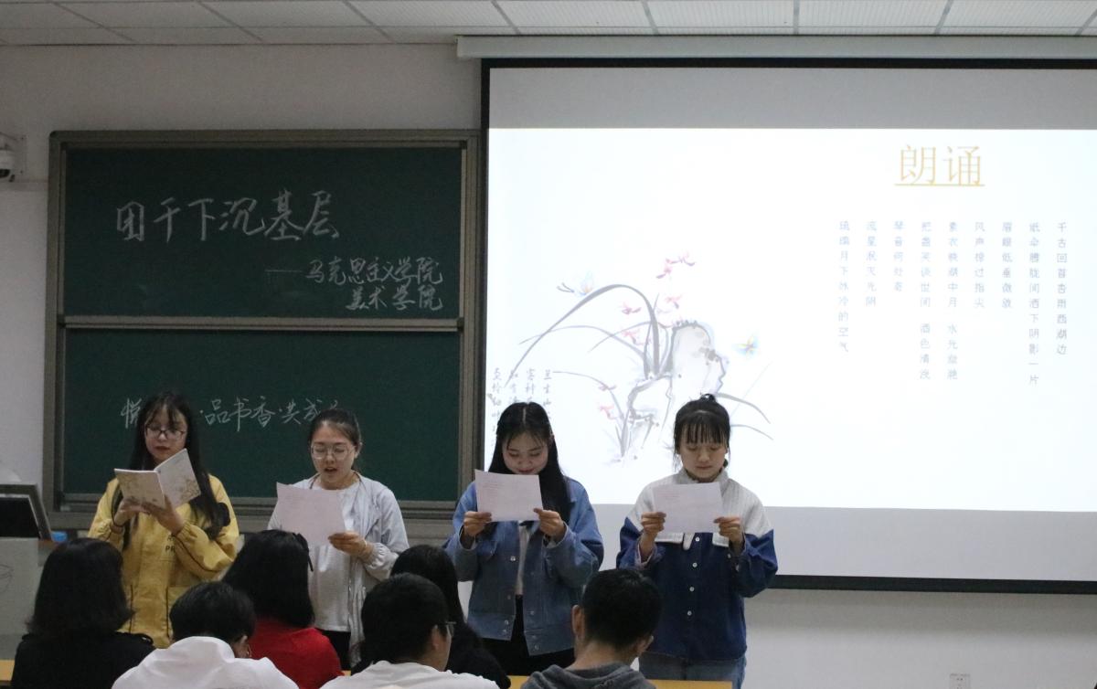 通过本次团干下沉基层活动,不仅给美术学院和马克思主义学院的学生提供了一个良好的交流学习平台,促进了两院之间的交流,让两院学生同时获得了知识和友谊。同时,也让同学们感受到了中华民族诗词文化的独特魅力,激发了同学们对经典书籍的热情,促进同学们养成爱读书、读好书的习惯。(图/文:薛万琪)