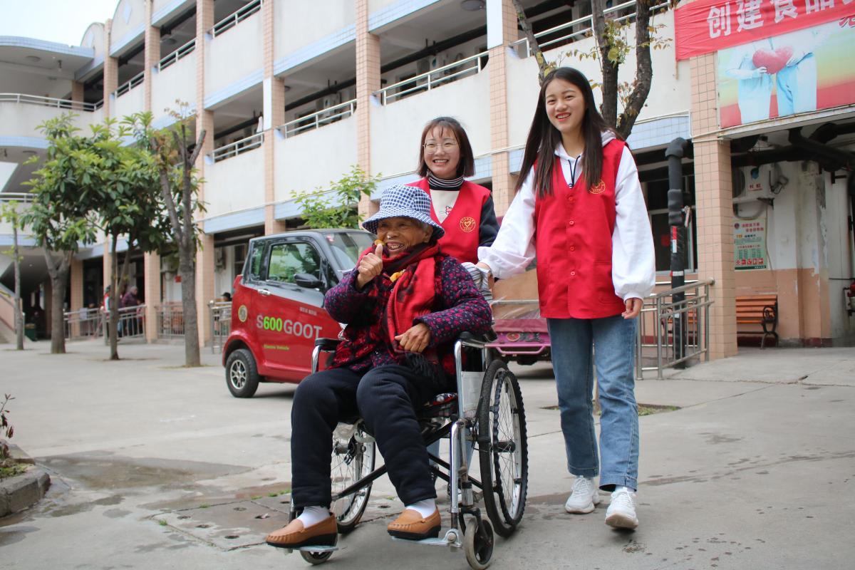 春风吹拂大地,志愿者们的“志愿心”与“志愿行”跟随着春风来到了基地。在寒冷天气的影响下,志愿者们并未在庭院中看到老人,于是志愿者们就进入到房间中寻找老人。房间中,老人看到志愿者的身影,连忙让他们坐在床边。应着老人的意愿,志愿者们在床边坐下,并开始和老人一起聊天。志愿者们同老人们说着学校最近开展的运动会,并表演了一下走方阵时的情景。谈及方阵,他们还向老人们描绘了运动会期间各学院那各具特色的方阵表演。听到这些,老人们的脑海中仿佛再现了运动场上志愿者们为比赛而拼搏的情景。想象到志愿者们昂首挺胸走正步的身影,他们都纷纷开始感慨青春的美好。在一番聊天过后,志愿者们为疲惫的老人进行按摩,来放松他们的身体。在放松完身体后,老人表示想要去院子里走走,志愿者们就推着老人在院子里闲逛,陪老人一起享受午后的时光。悠闲的时光总是很短暂,志愿活动也即将结束,志愿者们也与老人们一一告别。