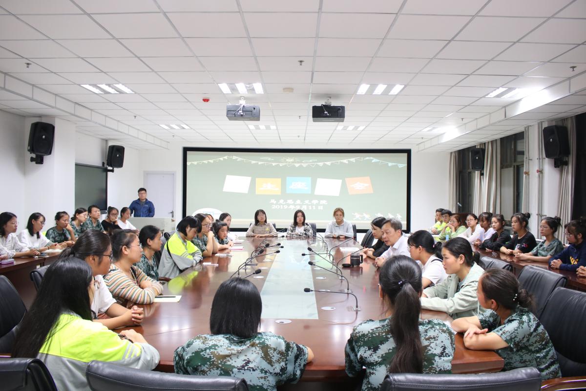 会议伊始,许涛书记首先为新生详细介绍了我院思想政治教育专业的历史发展和马克思主义学院的建院历程,就马克思主义学院的师资力量、组织划分等方面情况与各位新同学进行了分享。随后在提问交流环节,我院19级新生就入学以来专业学习、就业方向等方面的困惑请教了到场的老师,许书记和在场的老师们根据我院情况及日常管理经验为19级新生进行了解答,在互动交流中,部分同学还展示了自己的才艺,整个活动历时一个小时,在轻松愉快的氛围中落下帷幕。