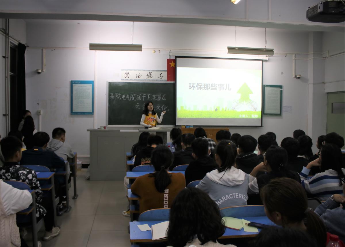 为了提高学生的环保意识,加强学生对绿色环保、垃圾分类、城市污染的理解,培养学生的团队协作能力。2019年10月13日晚上7点,马克思主义学院和电气(机电)工程学院在启智楼404室举行了“拥抱绿色,让城市更美好”主题宣讲活动。在两院团总支学生会的组织下,马克思主义学院2019级全体学生和电气(机电)工程学院2019级通信1班学生参加了此次宣讲活动。