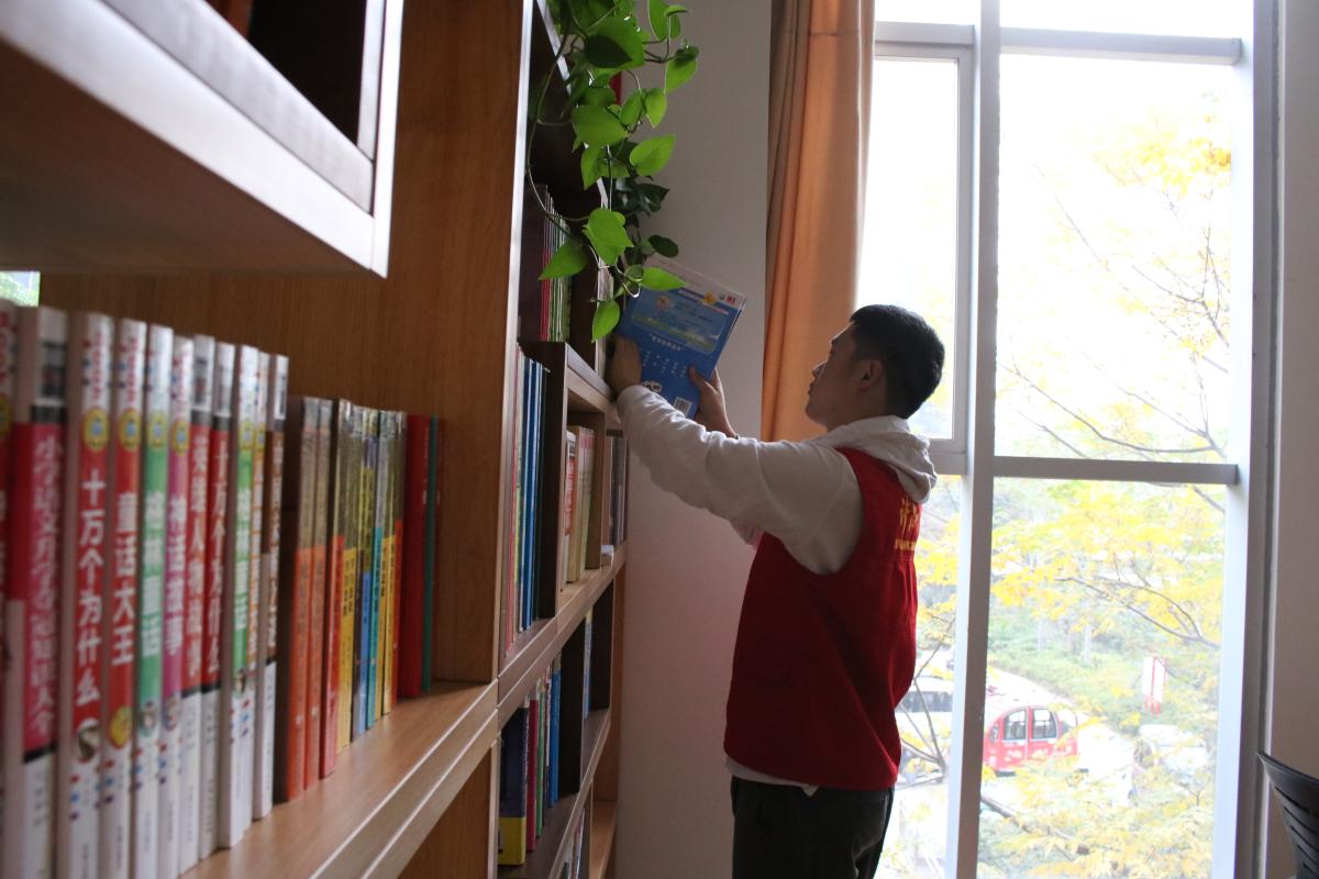 在与基地负责人沟通之后,志愿者们便正式开始了今天的活动。在社区二楼的图书室,工作人员带领志愿者们熟悉了他们接下来开展活动的地方。随后,他们开始对图书进行分类整理工作。在分类过程中,志愿者们发现图书中有很多少儿文学历史图书,并且盖有许昌市图书馆的章。在询问负责人之后,志愿者们了解到,由于社区里有很多孩子在放假时得不到父母的照看,社区便成立了图书室、娱乐室以及辅导室,为孩子们提供良好的成长环境。许昌市图书馆在得知社区的情况后,便开始为社区提供一些书籍,方便孩子们进行阅读。听完负责人的话,志愿者们更加用心地投入到了整理图书的活动中。就这样,在志愿者们共同努力下,本次志愿服务活动顺利完成。