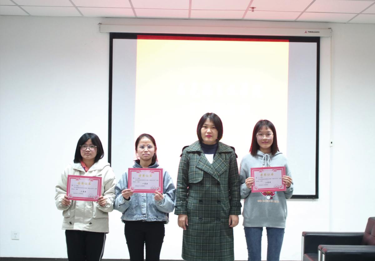 活动开始后,各宿舍进行展示,展示内容包括宿舍成员情况、宿舍照片、宿舍相关文化等。活动中,各寝室代表配合默契,通过ppt、视频的方式将寝室成员的基本情况、宿舍布局、宿舍文化等展现给现场观众和评委。其中132寝室制作的精彩快闪视频更是让现场观众赞不绝口,而223寝室的漂亮壁纸、精致床帘更是让人眼前一新。各寝室制作的ppt不仅让现场观众了解参赛寝室的基本情况,更让大家看到了参赛寝室成员之间的共同努力。她们幽默诙谐的语言以及精彩搞怪的视频不仅让现场观众拍掌大笑,还活跃了现场气氛。随着时间的流逝,本次活动进入了尾声。根据现场评委打分,135寝室、133寝室、223寝室以优异的成绩分别获得一等奖、二等奖和三等奖。随后,张静书记为获奖寝室颁发证书并鼓励大家再接再厉,争创文明美好的寝室文化。历经一个小时,本次活动在大家的欢声笑语中圆满结束。