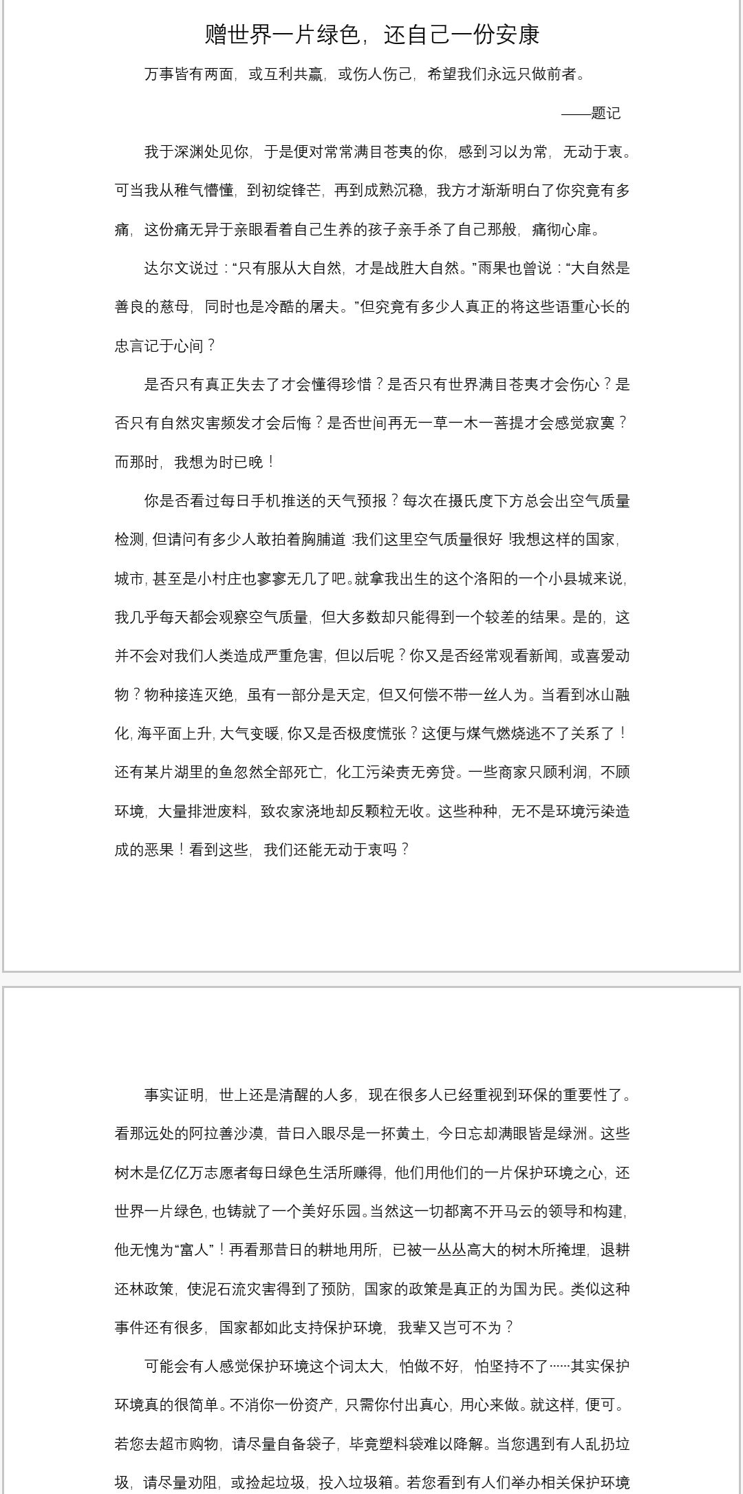 为了提高人们的环保意识,普及低碳生活理念,让更多人加入到保护地球的行列之中,马克思主义学院青年志愿者协会携同土木工程学院青年志愿者协会、法政学院青年志愿者协会和教育科学学院青年志愿者协会于2020年4月21日至28日在线上举行“绿色青春,争创环保”征文竞赛活动。
