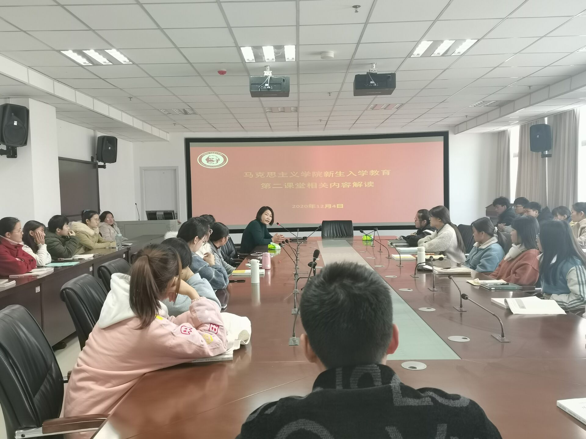 为了使同学们更快适应大学生活,对第二课堂有全面的了解,丰富同学们的课余生活,2020年12月8日团委书记张静在文综楼727室对全体2020级新生展开了一场关于第二课堂的讲解。