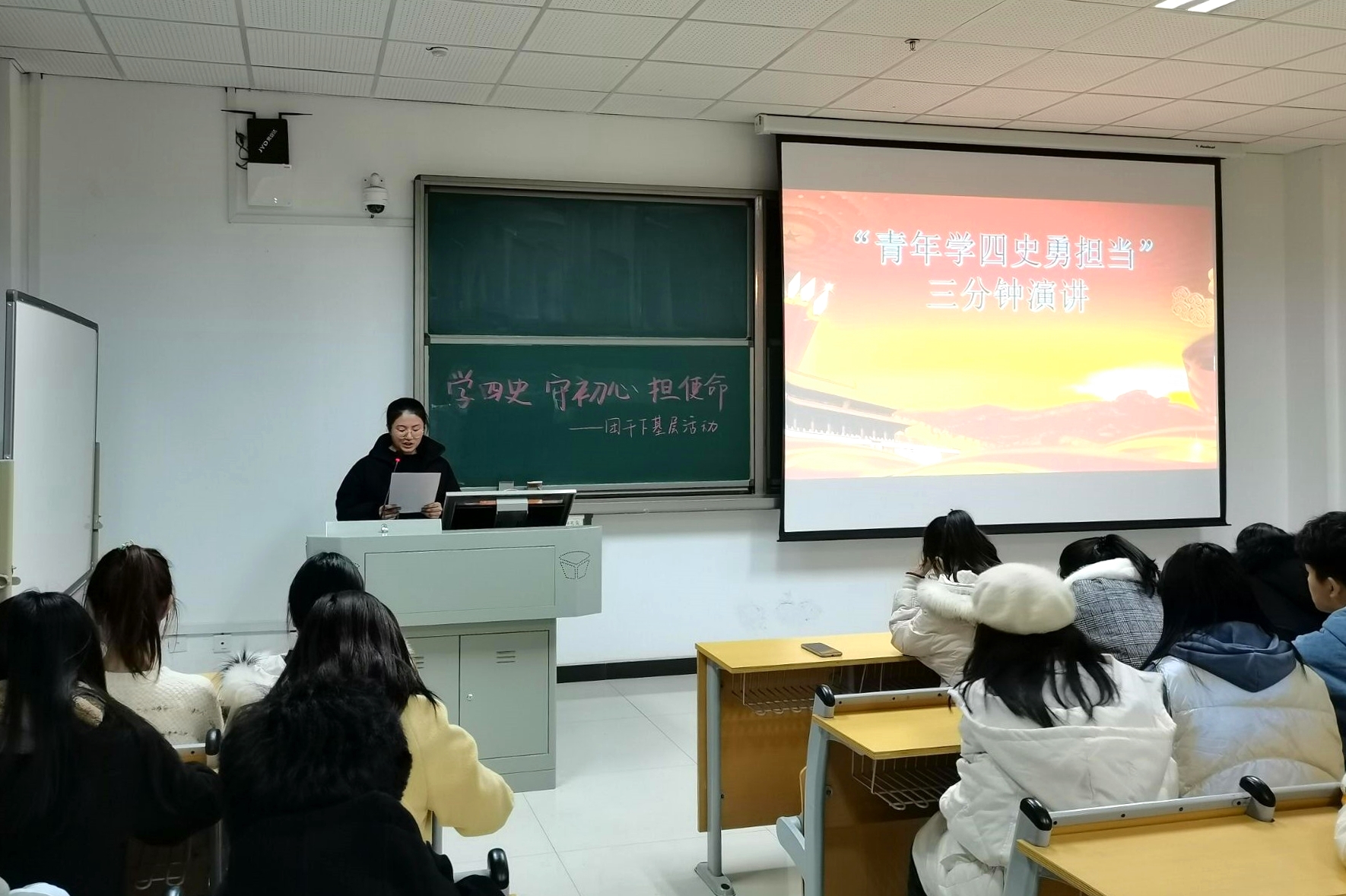 活动伊始,我院学生会组织部成员张娅楠向在场同学介绍本次活动的流程并宣布活动正式开始。随后,我院20级团支书张瑛琪、胡静茹同学进行关于四史的PPT讲解,讲解分为四个部分:党史是在中国共产党的领导下不断走向成熟的实践史;新中国史是中国共产党推进建设新中国的实践史;改革开放史是中国共产党推进社会主义制度自我完善和发展的实践史;中国共产党是引领世界社会主义发展的重要政治力量。“四史”讲的就是中国共产党为人民谋幸福、为民族谋复兴、为世界谋大同的实践史,中国共产党的领导是“四史”的主线。活动的最后,我院20级乾悦同学进行“不忘初心学四史,牢记使命勇担当”的主题演讲,慷慨激昂的演讲将活动的氛围推向高潮。经过一个小时的精彩讲解,本次活动圆满结束。