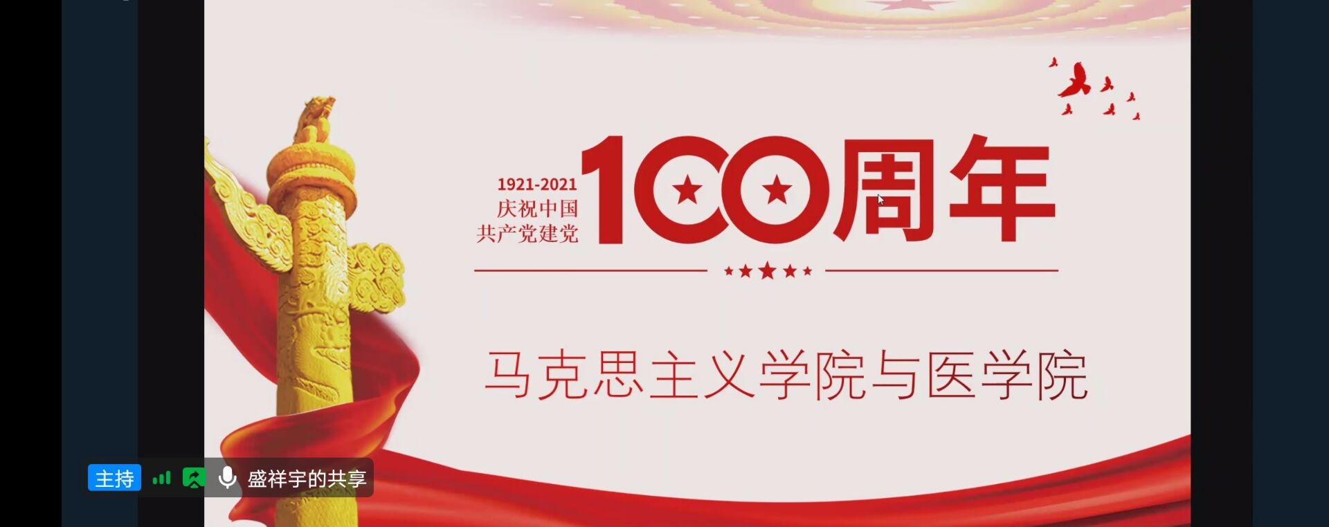 为进一步加强我院与医学院的交流与合作,共庆党的百年华诞,我院与医学院于2021年6月7日晚上八点在钉钉APP举行“1+100庆祝中国共产党成立100周年”的线上会议。本次团干下基层活动由医学院团支书盛祥宇同学主持,我院团委书记张静和医学院团委书记姚婷玉均出席本次活动,我院20级思政专业全体同学与医学院20级药学专业1班、20级医学检验技术本1班全体同学参加本次活动。