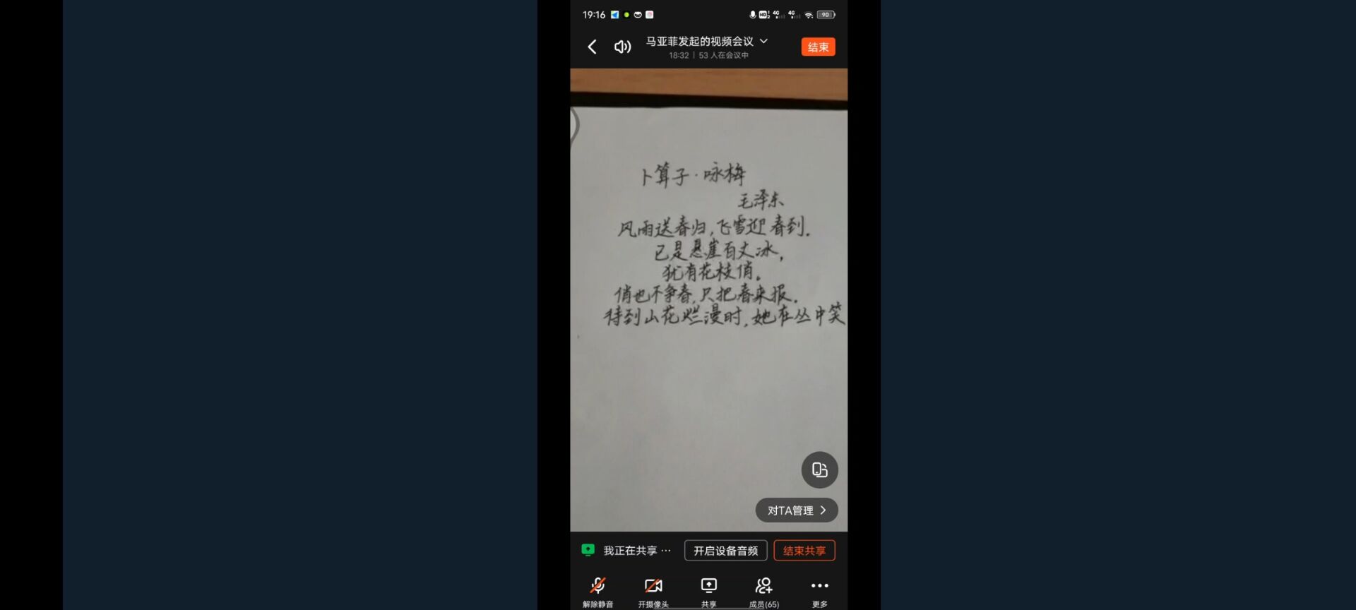比赛开始前,参赛学生准备好以传播正能量,弘扬爱国主义精神为主的规范字作品。晚上七点,同学们准时进入钉钉视频房间参与活动,青年发展部负责人马亚菲担任本次活动的主持人。在马亚菲向在场选手讲解了本次活动的初心后,比赛正式拉开帷幕。参赛者根据姓氏序号依次进行作品展示,并在三分钟内用标准的普通话说明个人作品的内容以及自己的真实感受。作品展示完毕后,现场评委依据作品内容、选手讲解依次评选出一等奖张瑛琪、二等奖李旭、赵安琪、三等奖李晨龙、刘雨、刘姝昕。活动最后,马亚菲总结道:“本次比赛以推广普通话为主题,评判的标准主要以个人展示环节为主,字的规范性为辅,希望获奖的同学再接再厉,未获奖的同学继续努力,争取在下次活动中取得佳绩。”历经两个小时,本次活动在同学们的积极配合下圆满结束。