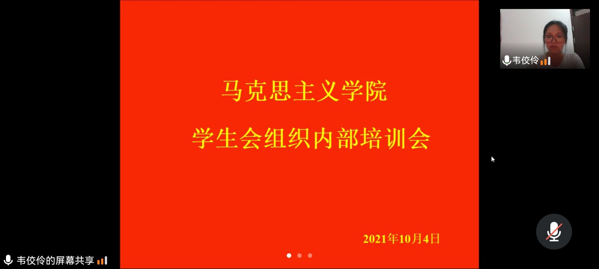 为使学生会回归服务同学宗旨,科学瘦身,培养清新组织文化,我院于2021年10月4日晚8点在腾讯会议召开学生会线上培训会。本次会议由学生会主席韦佼伶主持,学生会全体成员参加。