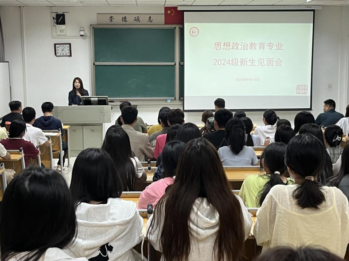 9月14日,我院在文综楼104教室举行思想政治教育专业新生见面会。学院领导班子成员、思政教研室教师代表、新生辅导员及2024级全体学生参加会议。会议由我院党委书记谢依楠主持。