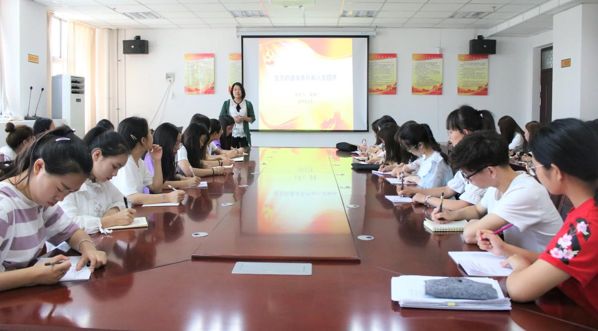 开班仪式结束后,张静书记以讲解党员所要具备的基本条件和入党程序作为分党课的第一讲,开启了本期分党课。张静书记主要为入党积极分子讲解了中国预备党员的条件、入党动机、以及如何做一名中国合格党员,张静书记对党的精辟解析,独到的见解和大量的旁征博引,让在座的入党积极分子在无比叹服的同时,深受鼓舞和教育,清楚地了解到中国共产党的伟大,同时明白入党的每一个要求、每一个阶段都是严格的。从张静书记的讲解中,入党积极分子看到了老师对党的热情和执着的追求,看到了党组织的先进性和强大的力量之所在,由此更加坚定了自己加入中国共产党的决心。张静书记希望大家对党员有了进一步深入的了解,坚定共产主义理想信念,端正入党动机。